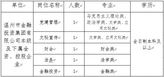 溫州市金融投資集團有限公司關(guān)于2018屆畢業(yè)生校園招聘的公告
